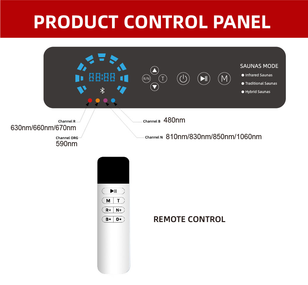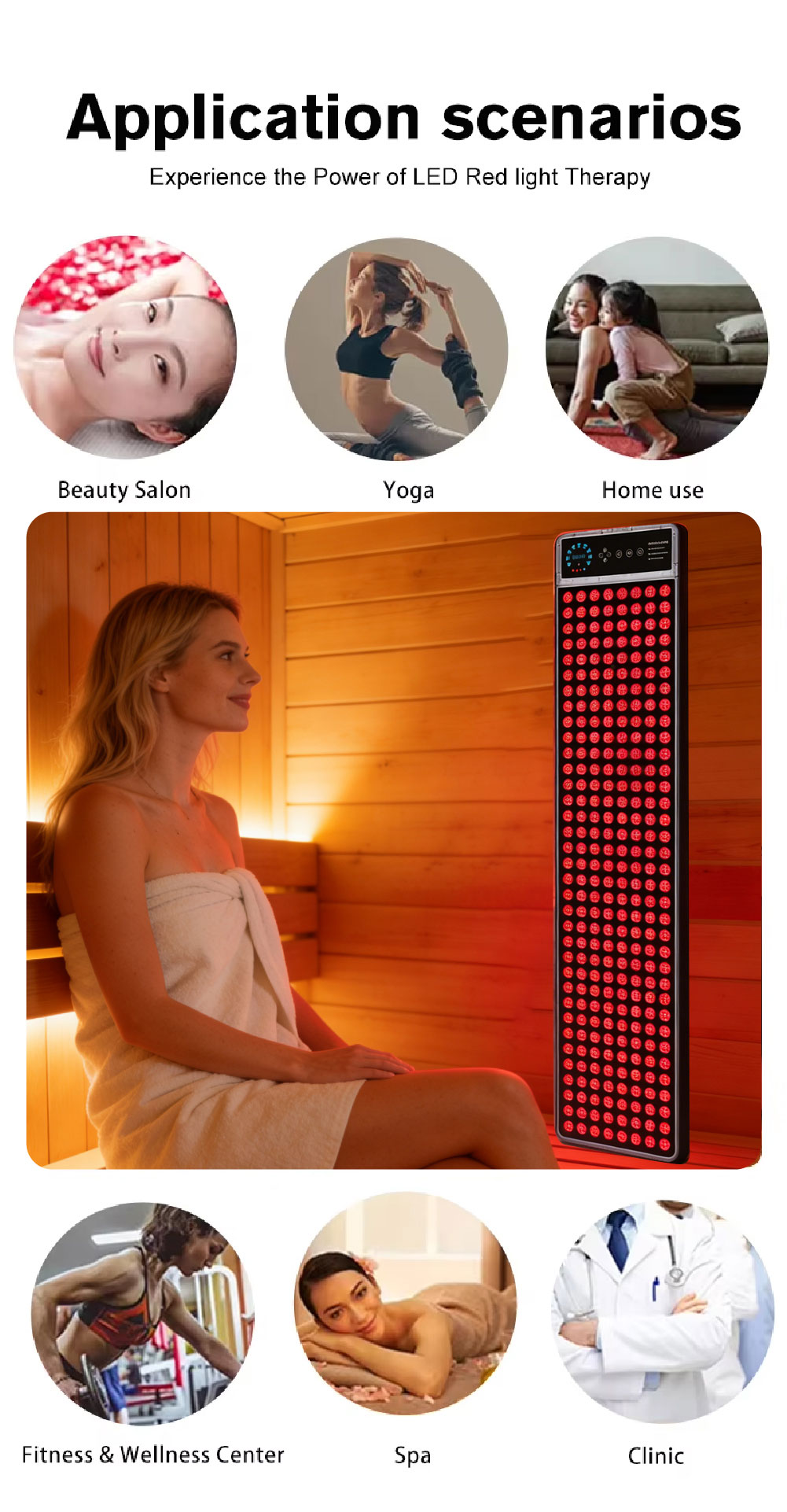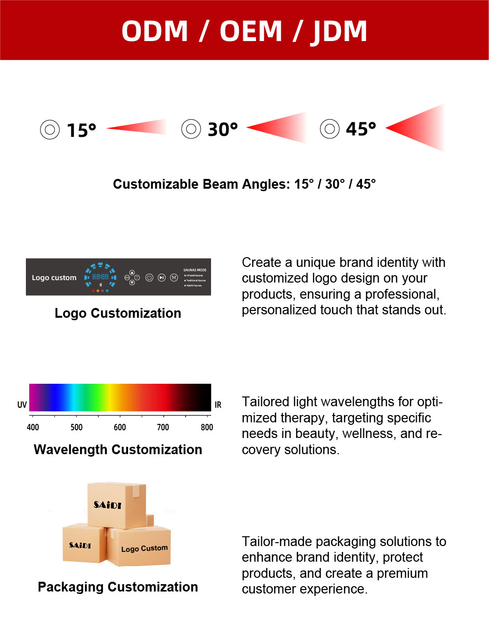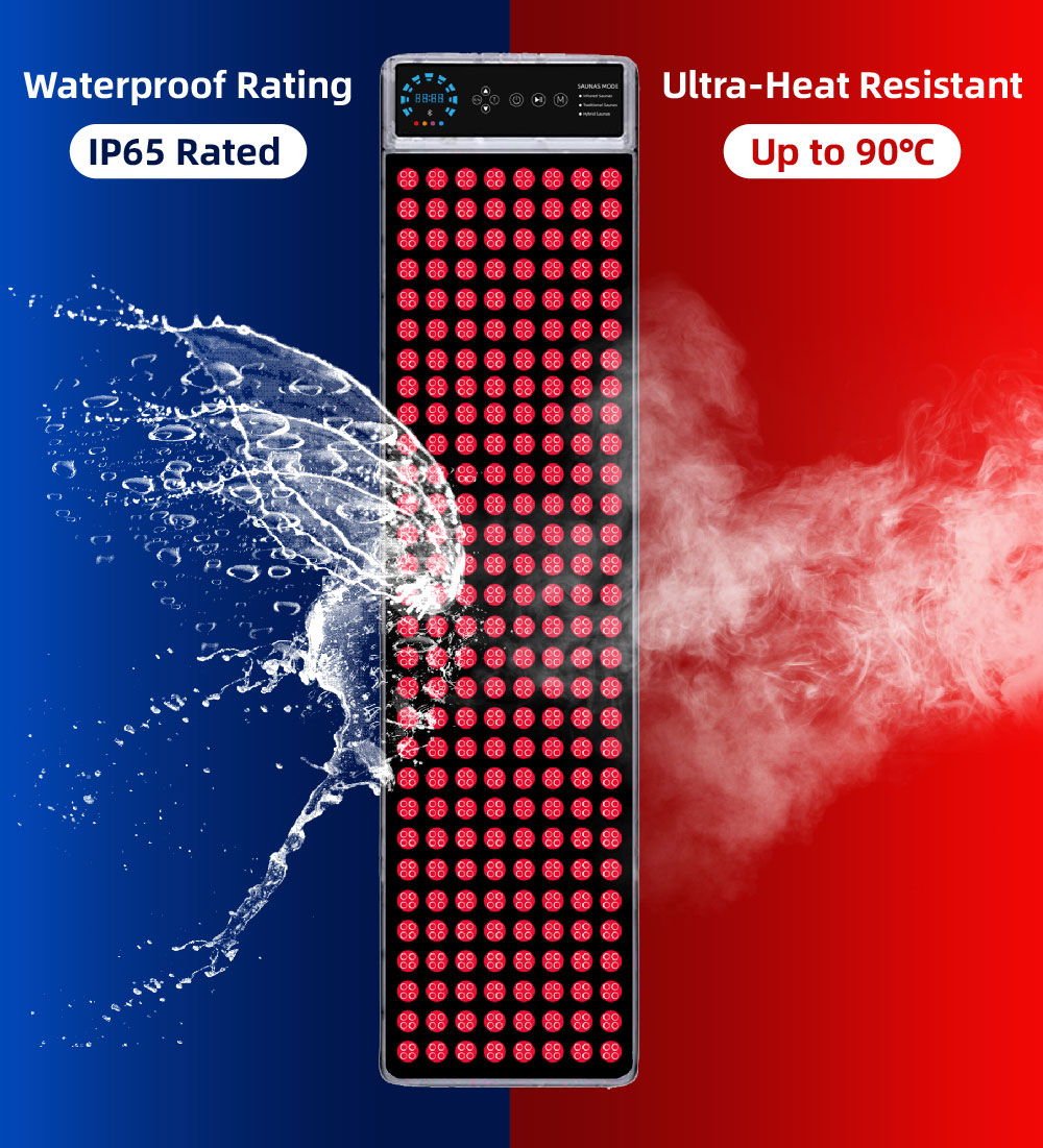 SAiDI IP65 Waterproof Red Light Therapy Panel. 9 wavelengths (480-1060nm) with MAX 185mW/cm². 0 EMF, 4-channel dimming, touch & remote control. Safe, durable & effective for sauna, spa & home therapy. 2-Year Warranty.