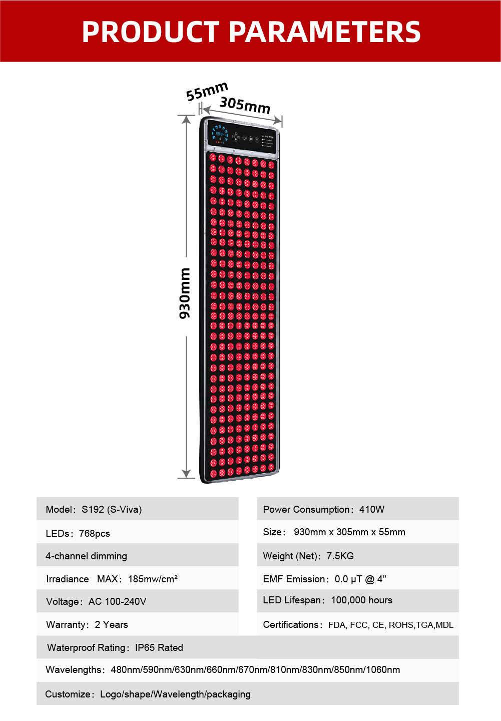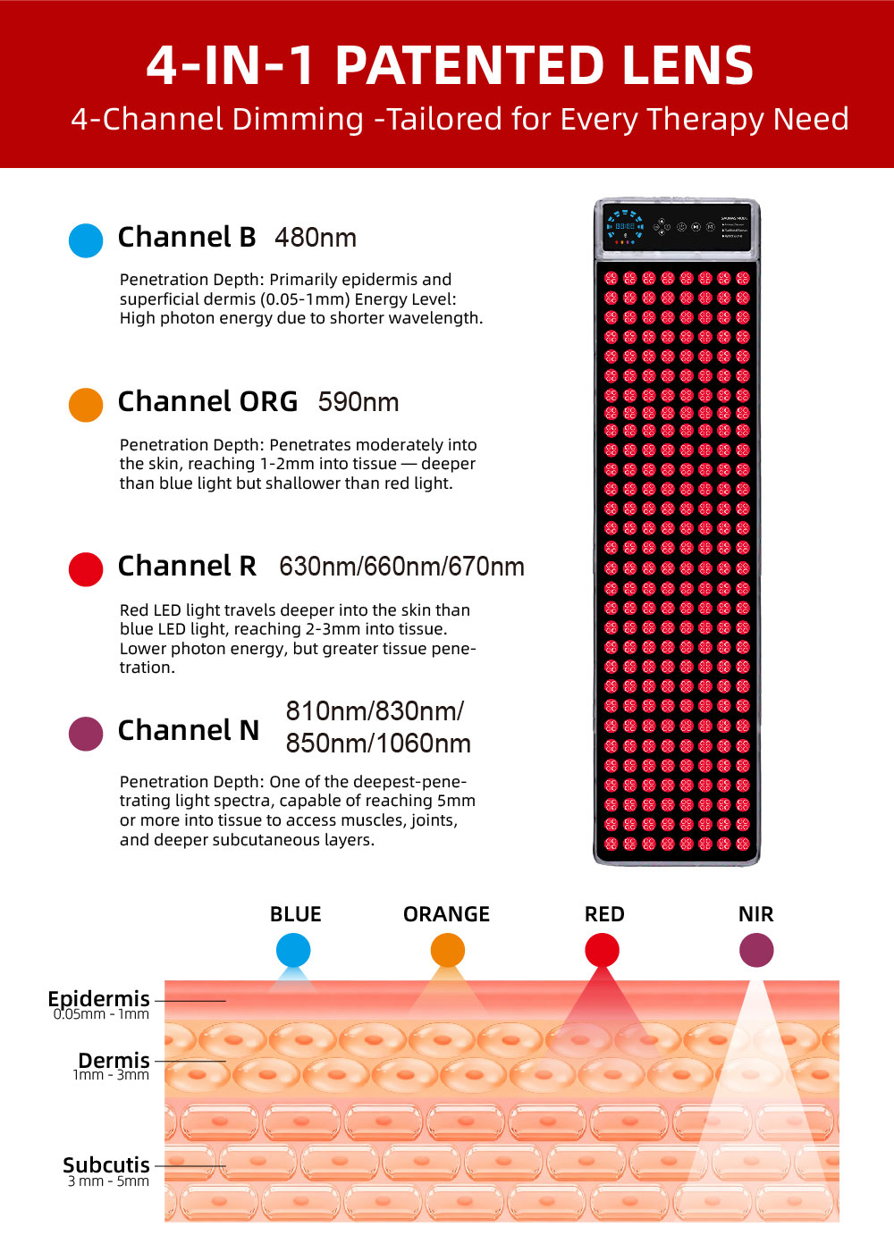 Wavelengths 480nm/590nm/630nm/660nm/670nm/810nm/830nm/850nm/1060nm 480nm/590nm/630nm/660nm/670nm/810nm/830nm/850nm/1060nm